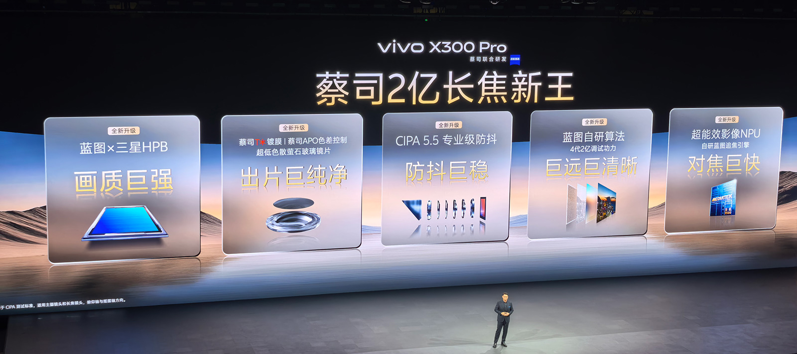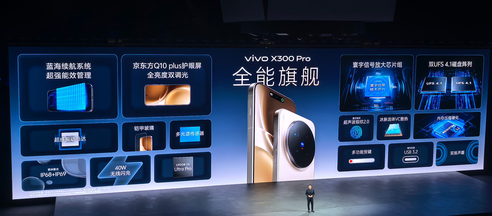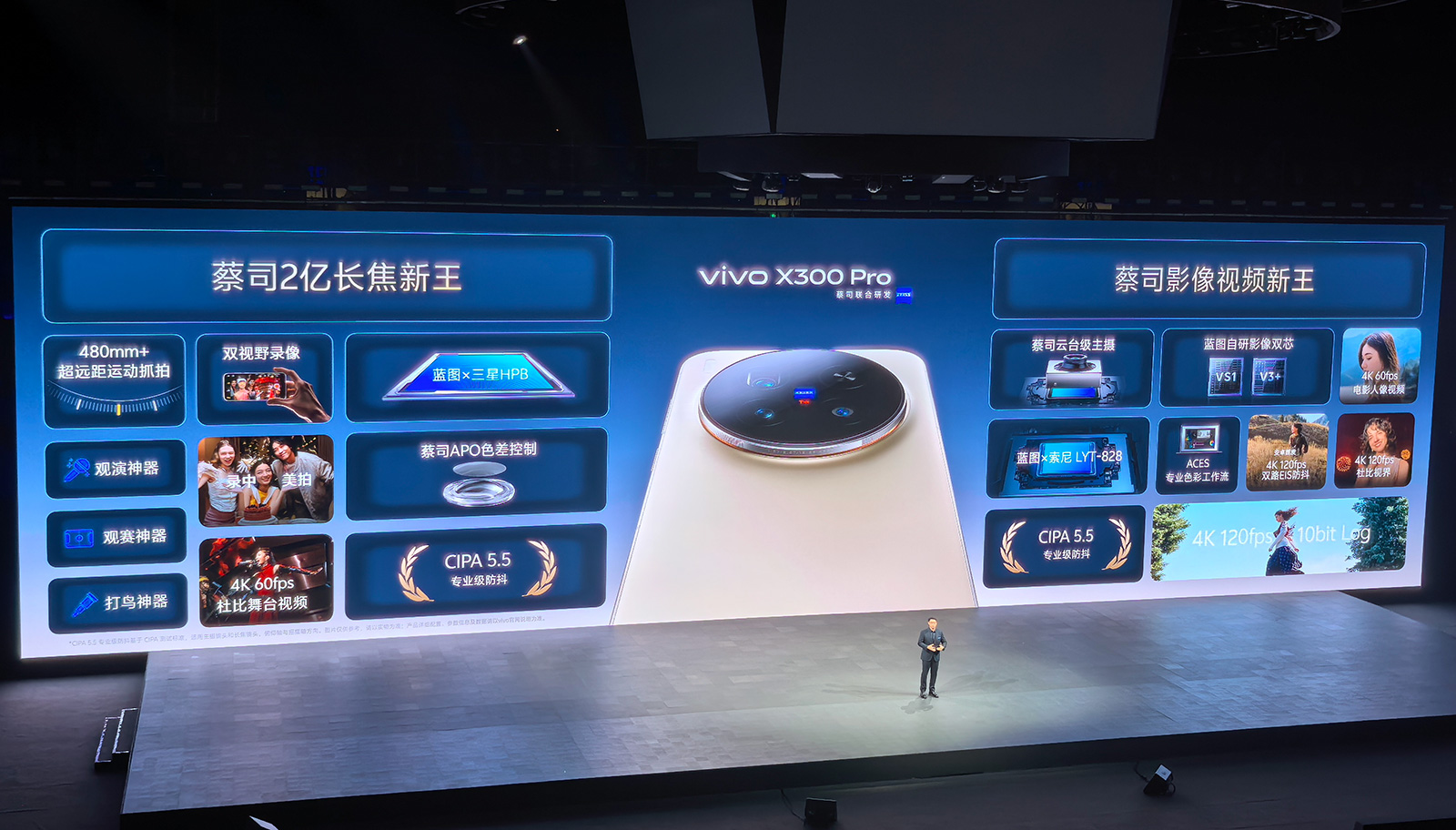 值得一提的是,vivo X300系列发布会的视频直播是采用vivo X300 Pro呈现的,现场使用10台vivo X300 Pro进行全程录制和直播。将如此盛大的发布会交由手机摄影完成,蓝厂很酷很大胆,足以看出vivo X300 Pro的实力与信心。