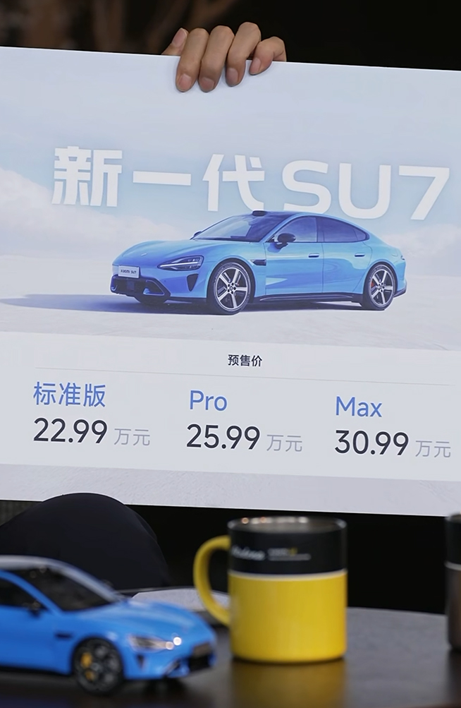 目前新一代SU7已开启小订,1000元小订意向金上市前可退。标准版和Pro版的预售价比上代涨价1.4万元,分别为22.99万元和25.99万元,Max版也涨了1万元,达到30.99万元。雷军透露近期行业内存涨价幅度挺大,上个季度已经涨了40%-50%,本季度预计继续涨50%甚至高达70%,新一代SU7单是内存就涨价几千元。另外,这次标准版和Pro版升级挺大,相当于加了几万块的配置。雷军表示,“新一代SU7上市价不大可能降到上代的价格,请大家谅解”。