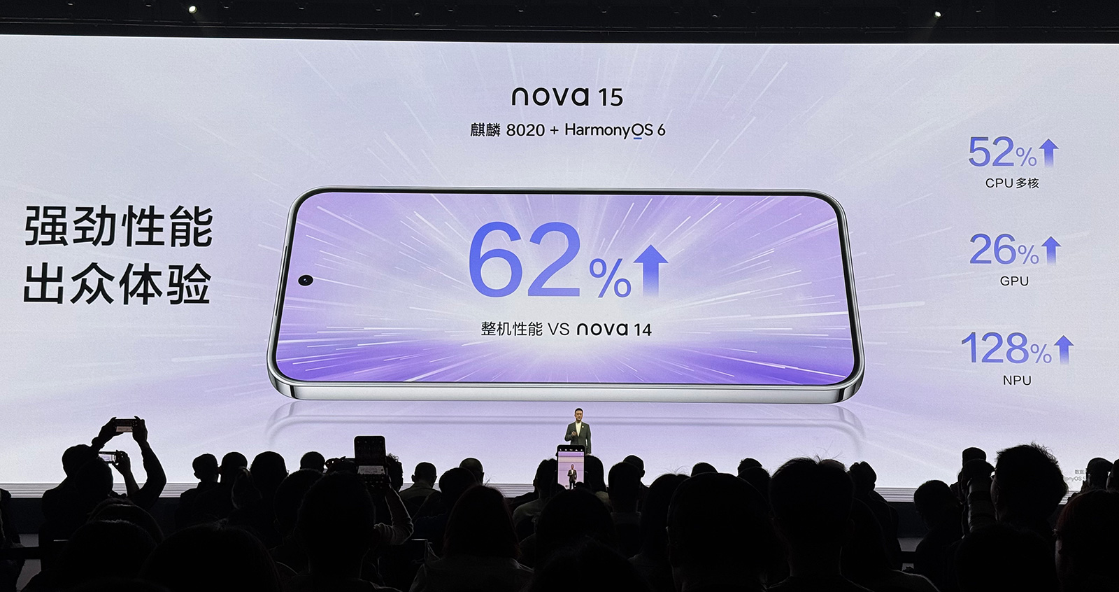根据华为终端BG CEO何刚介绍,华为nova 15采用麒麟8020芯片,性能比nova 14提升多达62%;nova 15 Ultra与nova 14 Pro搭载的是麒麟9010S芯片,在鸿蒙6的加持下,整机性能比上代提升18%,游戏帧率稳定性涨幅为50%。显然,华为中高端手机的性能表现在稳步增强,迅速拉近与同档竞品的性能差距,并且带来更有诚意的产品定价之后,华为真正在市场上收复失地指日可待。