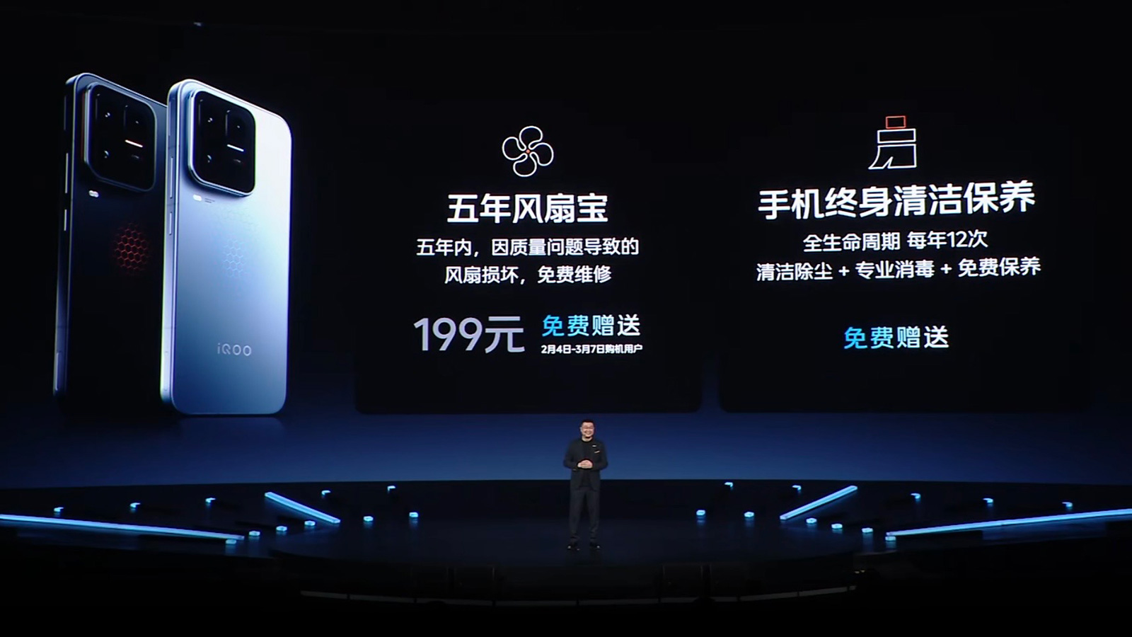 根据iQOO的测试,8W功率重载游戏1小时,iQOO 15 Ultra开风扇对比没开风扇,机身温差至高达6.9摄氏度,开风扇后全程机身温度未超过46摄氏度,游戏不降画质不降帧率。iQOO 15 Ultra的风扇支持三档风速调节,噪声低至20dB,不玩游戏时也能“一键降温”。另外,其风扇散热结构拥有防水防尘防跌落设计,获得了莱茵高可靠散热认证,购机享受终身清洁保养,限时送价值199元的五年风扇保。
