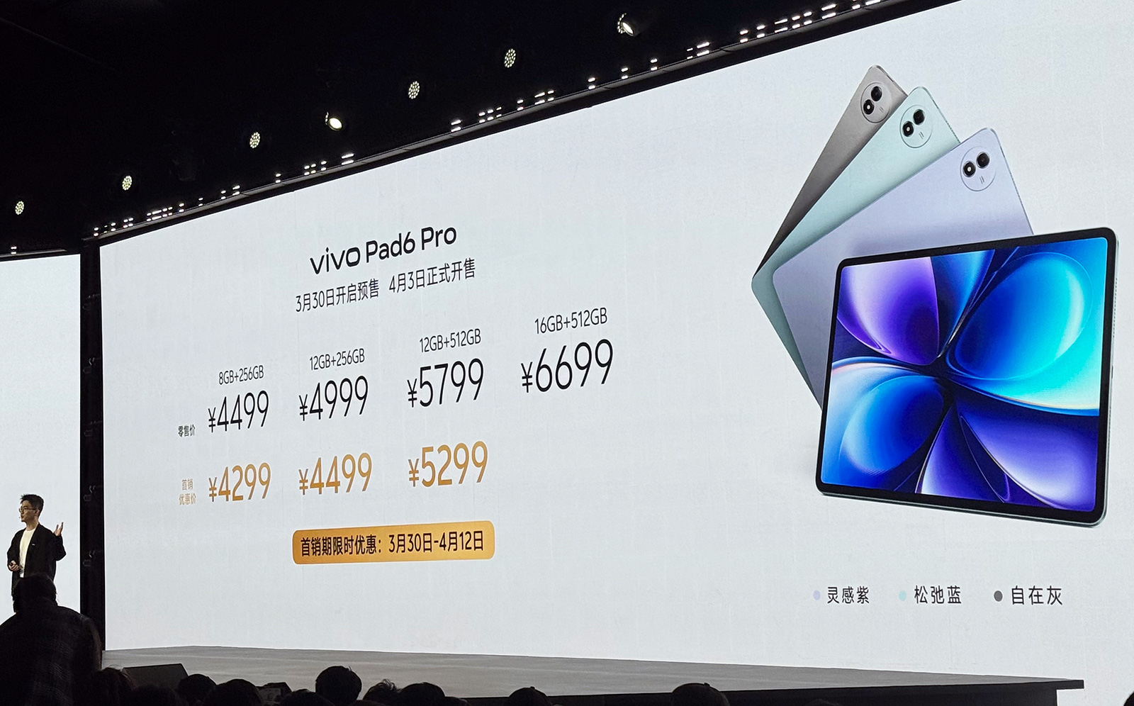 在此次vivo发布会蓝厂还推出vivo X300s和vivo Pad6 Pro,前者是“超能小V单”,售价4999元起,整体配置处于X300与X300 Pro之间;后者是一款采用旗舰芯片的4K大平板,屏幕尺寸达到13.2英寸,首销优惠价4299元起。添加科客公众号kekebat,获取更多精彩资讯。